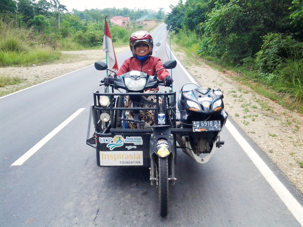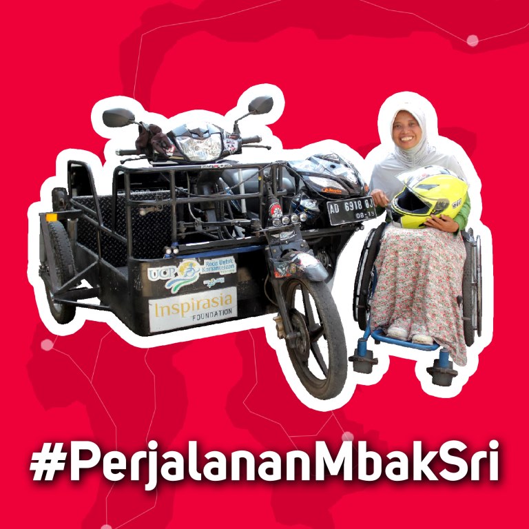 Mbak Sri sebelumnya telah melakukan perjalanan Aceh-Jakarta-Bali, bukan dengan leyeh-leyeh di mobil atau duduk santai di pesawat, tetapi beliau melakukannya dengan mengendarai sepeda motor roda tiganya, GOKILLL!!! Kita yang gak difabel aja boro-boro mau naik motor antar provinsi, pergi ke warung aja manggil ojek.